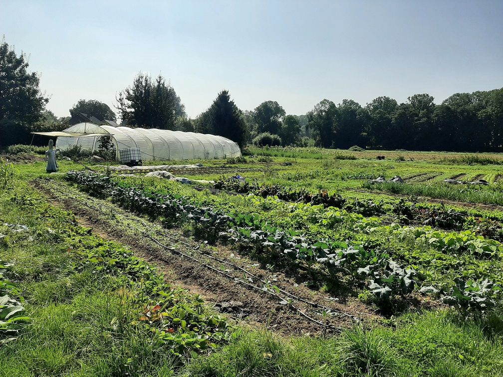 Nous produisons une variété de légumes sains et nourrissants de manière entièrement écologique pour notre village et ses alentours que nous vendons dans notre magasin à la ferme avec de nombreux autres produits : fruits bio, oeufs bio, produits laitiers bio au lait cru, pains bio levain cuit au feu de bois, ou encore; savons, produits d’entretien écologique.